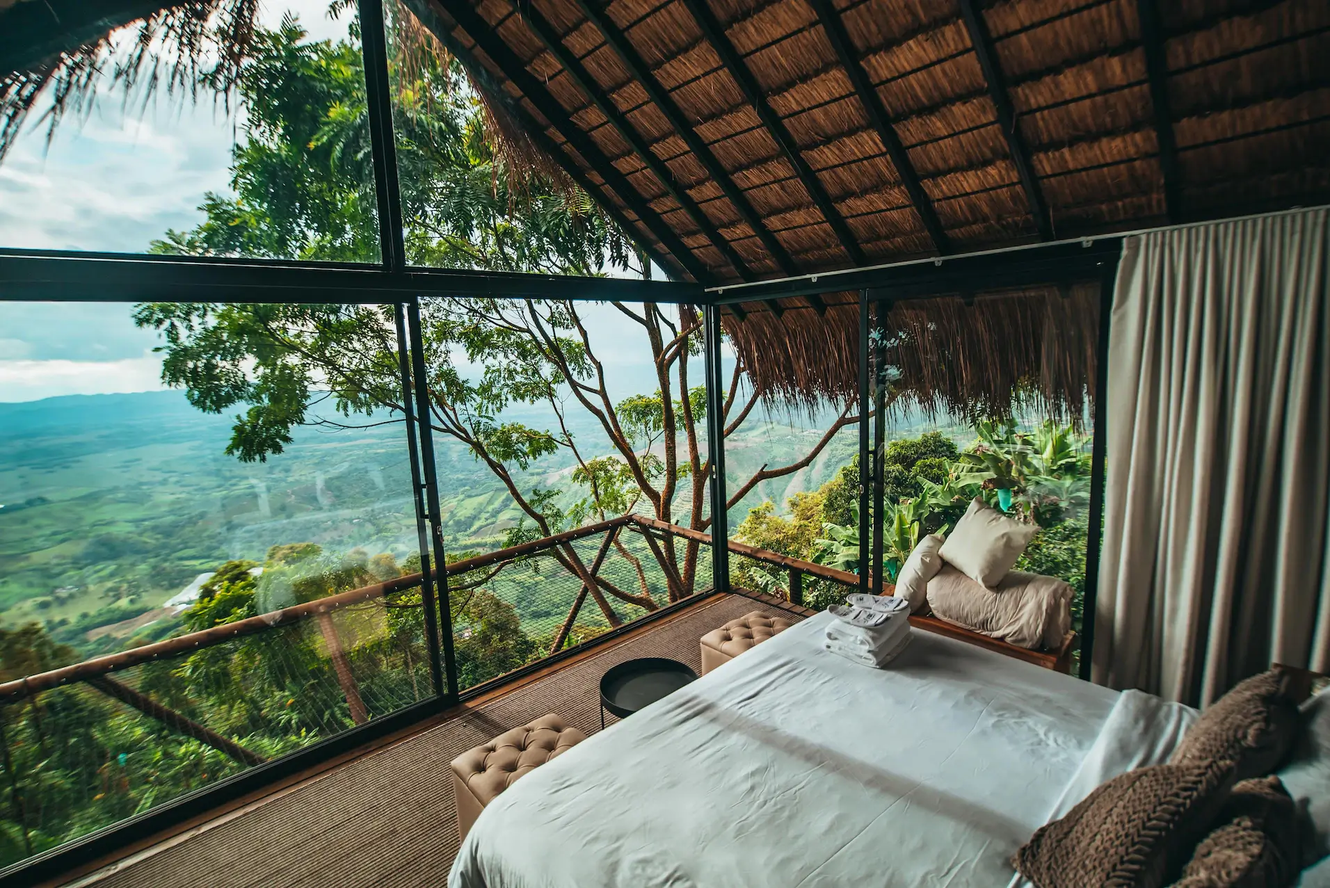 En Entre los Árboles, cada momento se convierte en una profunda conexión con la naturaleza. Desde el momento en que llegues, desconectarás del estrés cotidiano y te sumergirás en la tranquilidad que solo la naturaleza puede ofrecer. Aquí, la vida se celebra a través de grandes ventanales que te brindan las vistas más espectaculares del Quindío.
